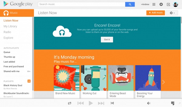 Thus, Google Play Music is a good selection for even the biggest of music hoarder. And it supports various audio formats, including MP3, AAC, WMA, FLAC, Ogg, and ALAC. However, it is a bit tricky to move songs from Apple Music to Google Play Music. This is principally because Apple Music is streamed at 256Kbps in AAC format.